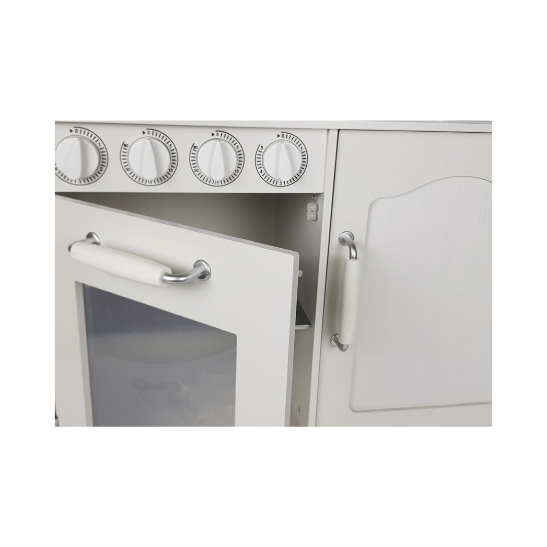 A children’s cooker, in line with the manufacturer’s recommendations, is intended for all cooks over 3 years of age . The construction of the kitchen is characterized by durability and high quality, which is due to the use of wood in its production. The design of the set is very well thought out, which can be seen when looking at the elements used for turning, pressing or opening . The white kitchen with accessories is packed in an original cardboard box with instructions that facilitate self-assembly of the toy.